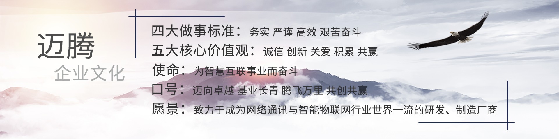 深圳市邁騰電子有限公司(簡稱邁騰),成立于2008年2月,是一家專注于網絡通訊與物聯網產品開發、生產、銷售及服務為一體的國家級高科技企業。目前是國、內外網絡通訊與物聯網行業前列的研發、制造廠商。